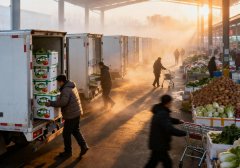 当第一缕晨光掠过农批市场的金属顶棚,满载蔬菜的冷链货车正缓缓打开液压门,而几公里外传统菜市场的摊主们刚刚支起褪色的遮阳伞,两种截然不同的时代图景在同一片天空下静静...